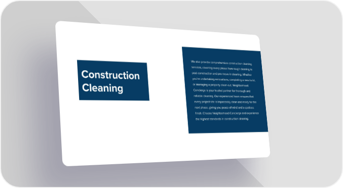 We also provide comprehensive construction cleaning services, covering every phase from rough cleaning to post-construction and pre-move-in cleaning. Whether you're undertaking renovations, completing a new build, Construction or managing a property clean-out, Neighborhood Cleaning Concierge is your trusted partner for thorough and reliable cleaning. Our experienced team ensures that every project site is impeccably clean and ready for the next phase, giving you peace of mind and a spotless finish. Choose Neighborhood Concierge and experience the highest standards in construction cleaning.