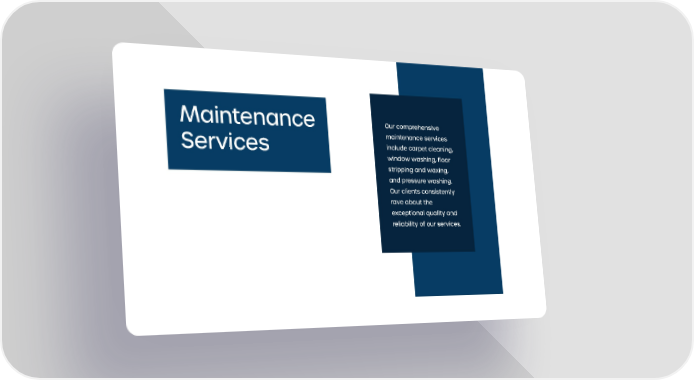Maintenance Services Our comprehensive maintenance services include carpet cleaning, window washing, floor stripping and waxing, and pressure washing. Our clients consistently rave about the exceptional quality and reliability of our services.
